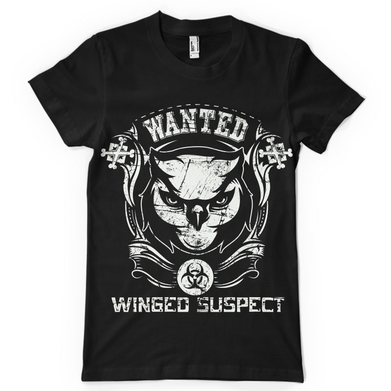 Winged suspect t-shirt print features a detailed design available for Adobe Illustrator, Adobe Photoshop and Corel Draw and can be used for digital printing and screenprinting . Ready to print or use in anything you want.