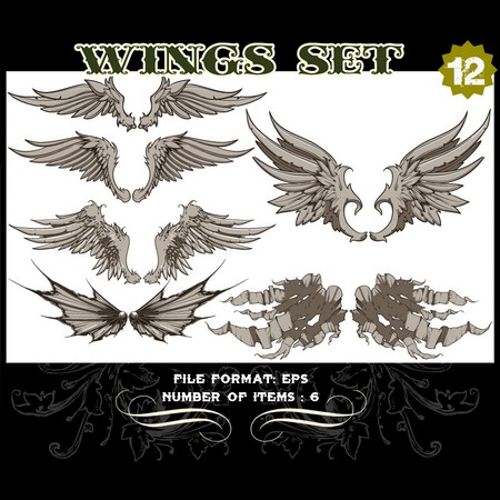 The pure and innocent symbol of liberty and freedom , a set of wings in vector format is now available . Here you can find some beautiful detailed wings (bird wings, angel wings, demon wings, tattoo wings etc ) you can use in your designs. Let your ideas and creativity fly free!