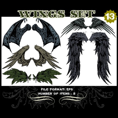 The pure and innocent symbol of liberty and freedom , a set of wings in vector format is now available . Here you can find some beautiful detailed wings (bird wings, angel wings, demon wings, tattoo wings etc ) you can use in your designs. Let your ideas and creativity fly free!