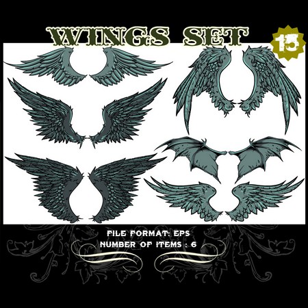 The pure and innocent symbol of liberty and freedom , a set of wings in vector format is now available . Here you can find some beautiful detailed wings (bird wings, angel wings, demon wings, tattoo wings etc ) you can use in your designs. Let your ideas and creativity fly free!