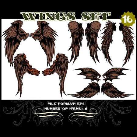 The pure and innocent symbol of liberty and freedom , a set of wings in vector format is now available . Here you can find some beautiful detailed wings (bird wings, angel wings, demon wings, tattoo wings etc ) you can use in your designs. Let your ideas and creativity fly free!