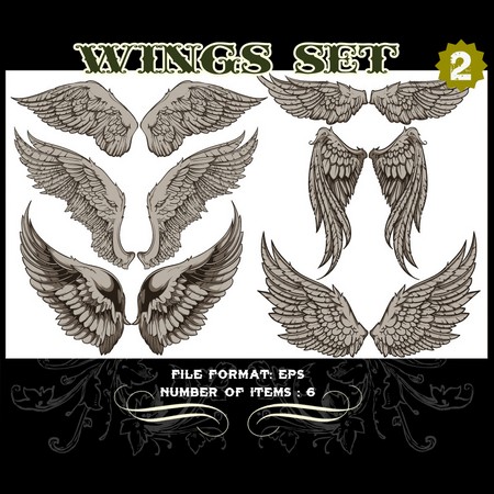 The pure and innocent symbol of liberty and freedom , a set of wings in vector format is now available . Here you can find some beautiful detailed wings (bird wings, angel wings, demon wings, tattoo wings etc ) you can use in your designs. Let your ideas and creativity fly free!