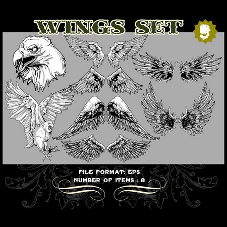 The pure and innocent symbol of liberty and freedom , a set of wings in vector format is now available . Here you can find some beautiful detailed wings (bird wings, angel wings, demon wings, tattoo wings etc ) you can use in your designs. Let your ideas and creativity fly free!
