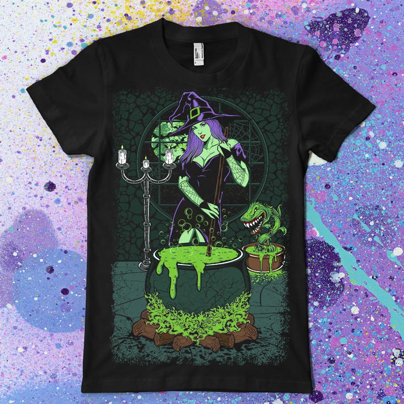 Witch Cooking t-shirt design features a witch sexy detailed screen print now available for Adobe Illustrator, Adobe Photoshop and Corel Draw and can be used for digital printing and screenprinting
