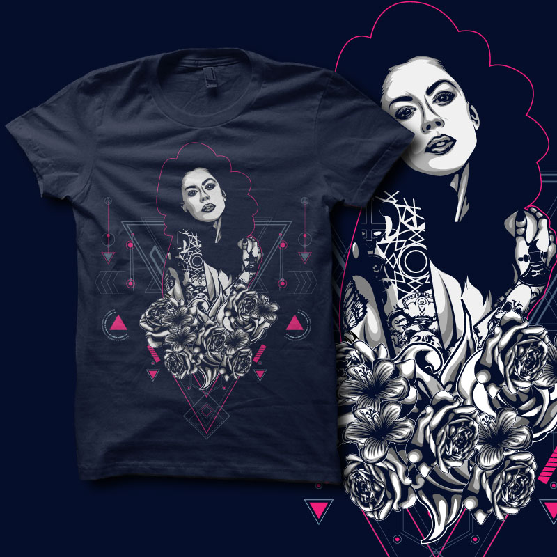 is the best women with tattoo illustration for your t-shirt or any apparel stuff,