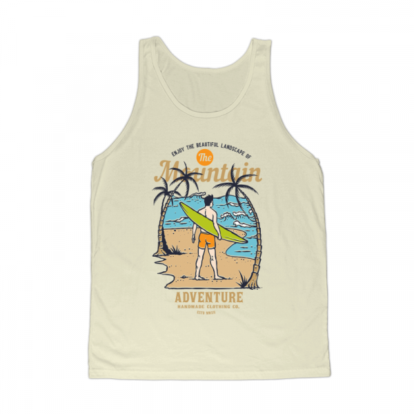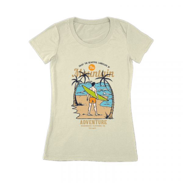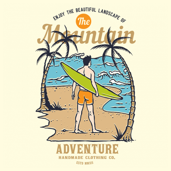 Vector illustration Surfer waiting for the wave on the summer palm beach island. Ready to print on t-shirt.