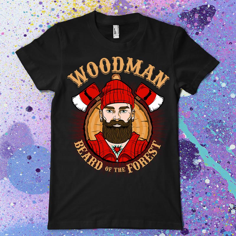 Woodman t-shirt design features a Lumberjack design detailed screen print now available for Adobe Illustrator, Adobe Photoshop and Corel Draw and can be used for digital printing and screenprinting.