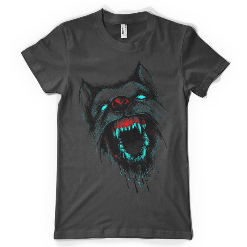 "WOOF" is a unique illustration of a mad barking dog ready to attack anything that comes along its way. This design is very unique since its main colors (Teal and red) is an eye-catching neon colors that is so cool when printed on dark shirts and neon colors would pop out in the night (depending if you use glow in the dark paint). File contains a PSD design with 17x 24 in size with 300 dpi.