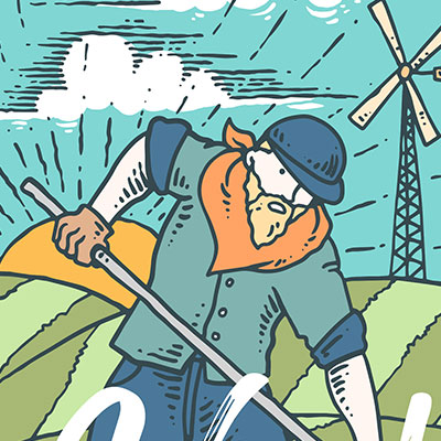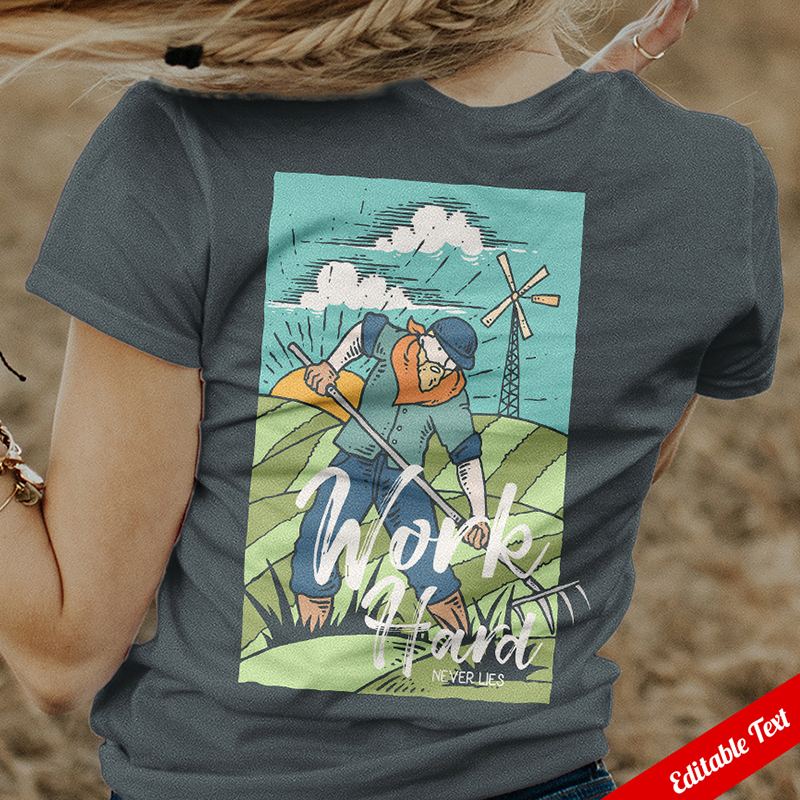 Vector illustration of farmer working hard on the fields. Ready to print on t-shirt.