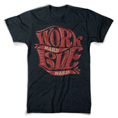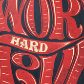 Work hard, love hard graphic design template in vector format, featuring detailed optimistic message now available for Adobe Illustrator, Adobe Photoshop and Corel Draw and can be used for digital printing and screenprinting .