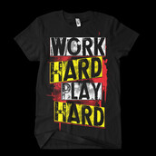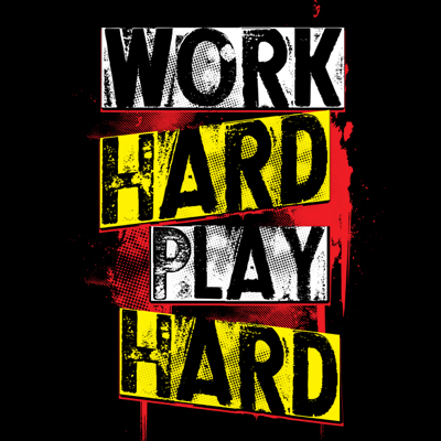 work hard play hard shirt design featuring typography style quote, with details. The files available are suitable for Adobe Illustrator and Adobe Photoshop and can be used for digital printing and screenprinting.