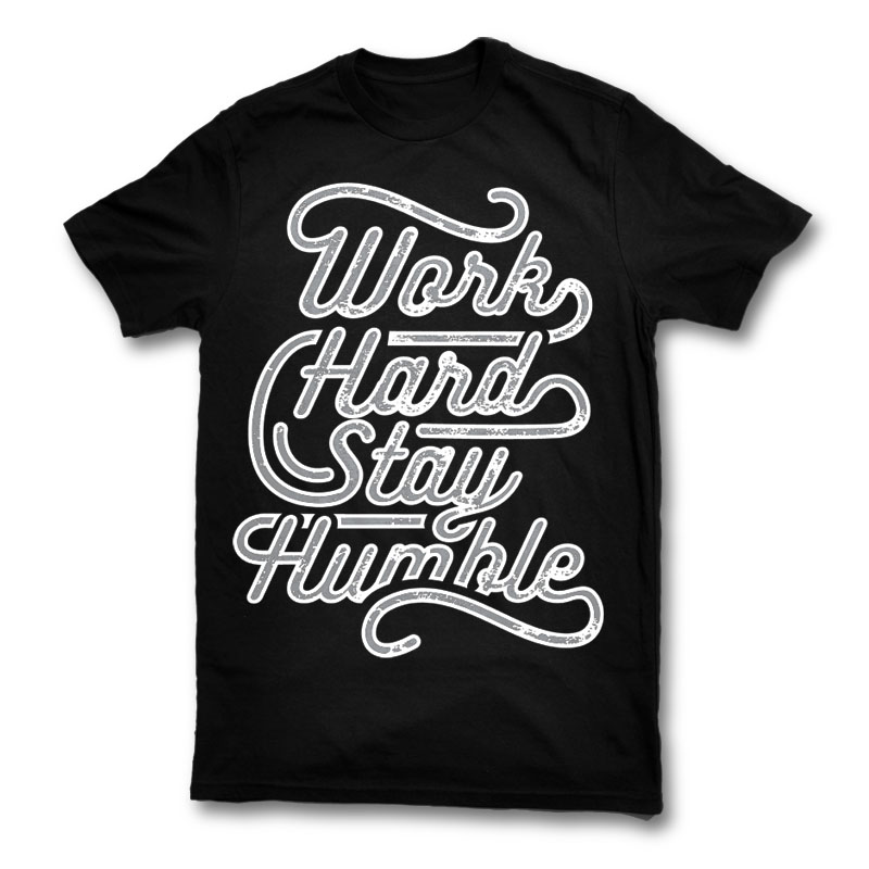 Work Hard Stay Humble Typography Design created with CorelDraw .2 colour print, AI, CDR, PSD File separated Layers. Can be used for digital printing and screen printing.
