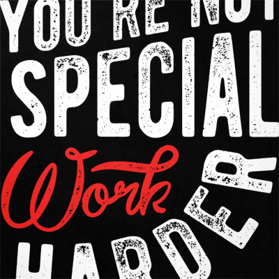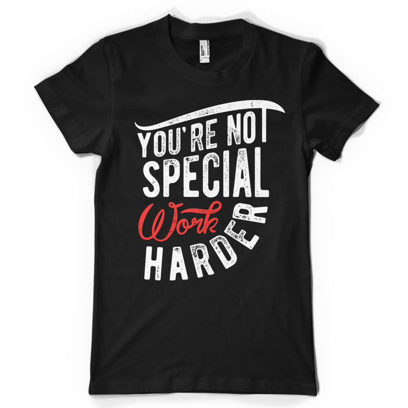 "Work Harder" T-shirt design featuring typography style quote, with distressed details. The files available are suitable for Adobe Illustrator, Adobe Photoshop and Corel Draw and can be used for digital printing and screenprinting.