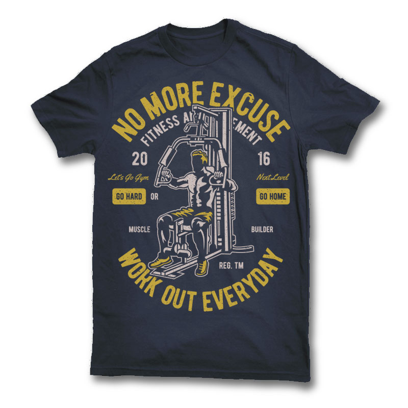 Work Out Everyday Tshirt Design Template based on vector files , such as AI and CDR also with PSD separated Layers file, the design has 2 color print, it can be used for digital printing and screen printing.