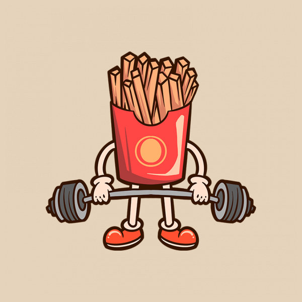 workout fries cartoon