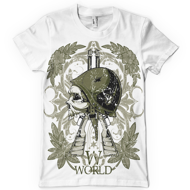 World War Symbol printed t-shirt features a detailed screen print of skull warrior is now available in EPS format file and can be used for digital printing and screenprinting . Ready to print or use in anything you want.