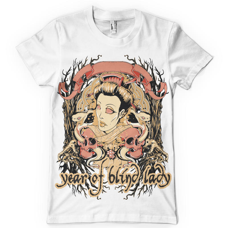 Year of blind lady printed t-shirt features a detailed screen print of beautiful blind woman surrounded by skulls is now available in EPS format file and can be used for digital printing and screenprinting . Ready to print or use in anything you want.
