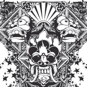 Year of the dragon digital design template in vector format, featuring detailed dragon mask and asian details now available for Adobe Illustrator, Adobe Photoshop and Corel Draw and can be used for digital printing and screenprinting .