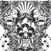 Dragon masks trinity on a vintage background