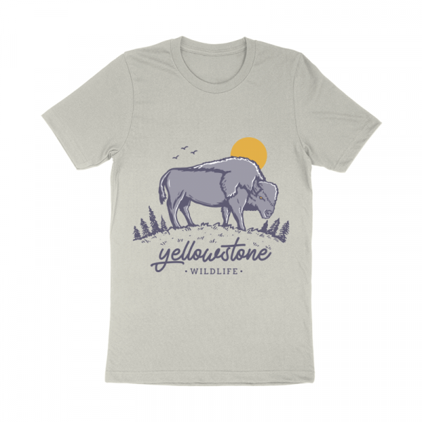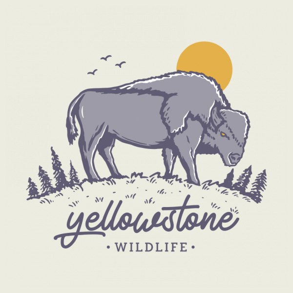 Yellowstone Wildlife is a vintage illustration that is suitable for apparel or merchandise about nature, outdoors, wildlife, animal, buffalo, yellowstone, national park, california, yosemite, wyoming, bison, vacation, travel, holiday.