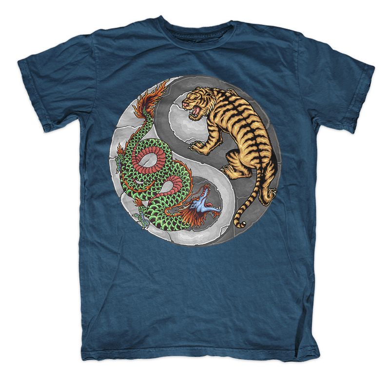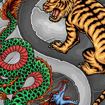 Vector illustration of yin yang chinese dragon tiger tattoo with high quality detail. Ready to print on t-shirt.