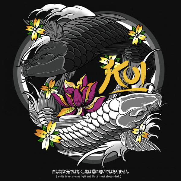 Illustration of Koi fish, koi with yinyang formation.
