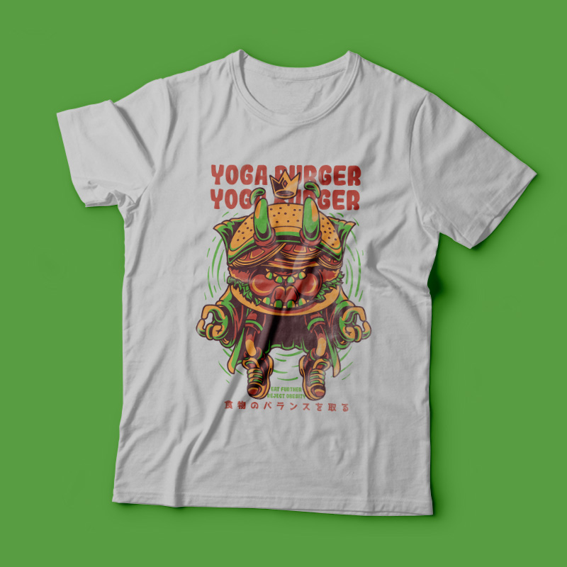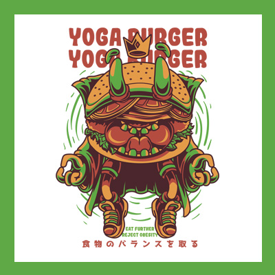 Yoga Burger it's a character design that was made in Adobe Illustrator. Based on vector file, easy to resize and edit. File features AI, EPS, and PNG all in zip, CMYK color mode and 4 color. Can be used for digital printing and screen printing.