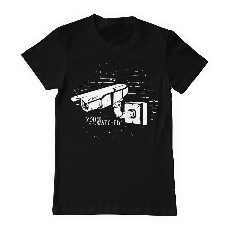 "You are being watched" design is available in high quality files, such as Ai,EPS, PDF and PNG. Vector files are organized on separate layers and all elements are editable.The fonts used are 100% free for personal and commercial use(attached Read me file in the archive). Can be used for both digital (DTG) and screenprinting.