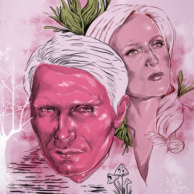 You are dangerous- illustration made by Vizireanu Maria-Magdalena, PNG file , illustrates two main characters of the tv series Hannibal , they are surrounded by floral elements.