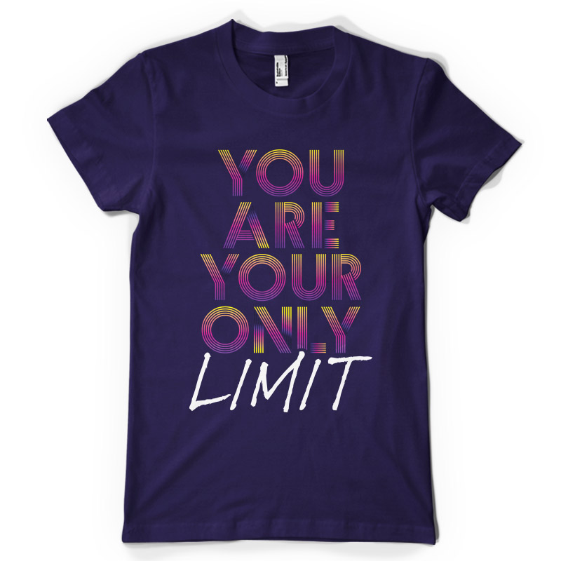 "You Are Your Only Limit" is a unique colorful typography with a mixture of neon colors mainly purple, pink and yellow. This design will definitely pop on tees and on any other product. File contains a PSD file with 17 x 24 in size with 300dpi.