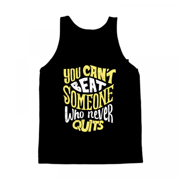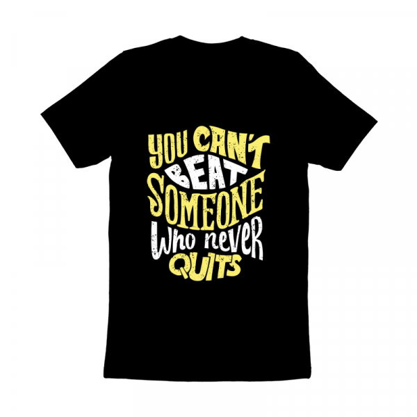 "You Can't Beat Someone Who Never Quits" based on vector design. This artwork is in AI, EPS, PNG and PDF files, ready for print. Separate color based on layer, it can be used for digital printing and screen printing, and can also be used for stickers, logos, poster,