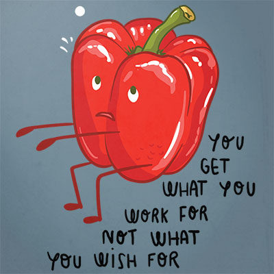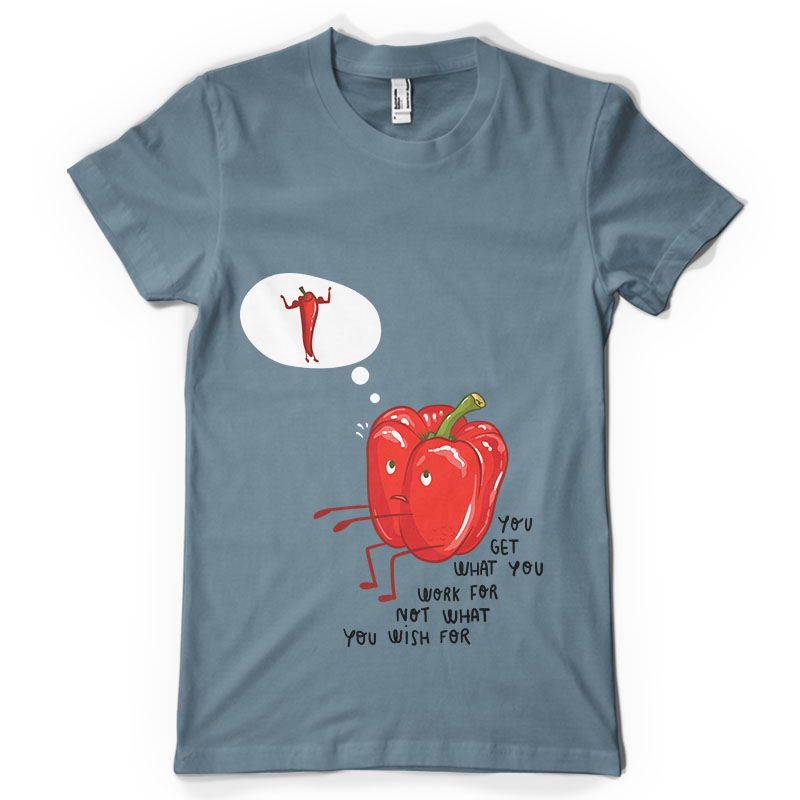 You get what you work for is an illustration made in Adobe Photophop,featuring a fat pepper making squats.It can be used on digital printing,screen printing and T-shirt design and it is available in PSD and PNG format file.