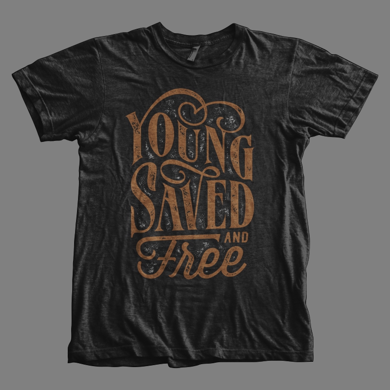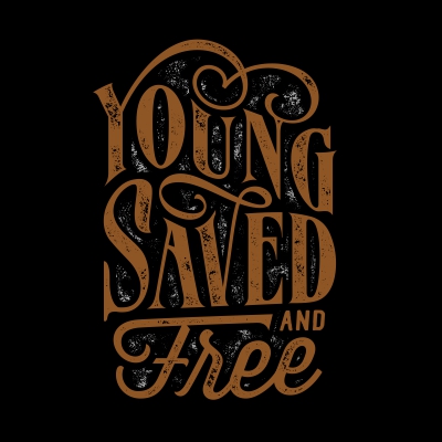 "Young Saved And Free" typography style t-shirt design.