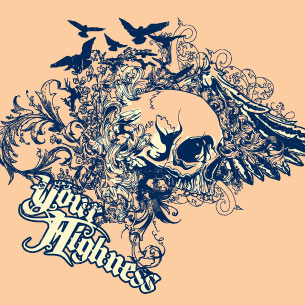 Your highness graphic design in vector format, featuring detailed skull now available for Adobe Illustrator, Adobe Photoshop and Corel Draw and can be used for digital printing and screenprinting .