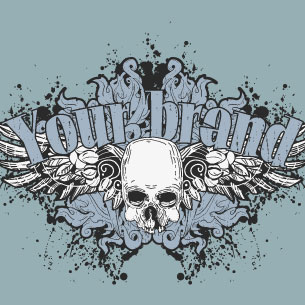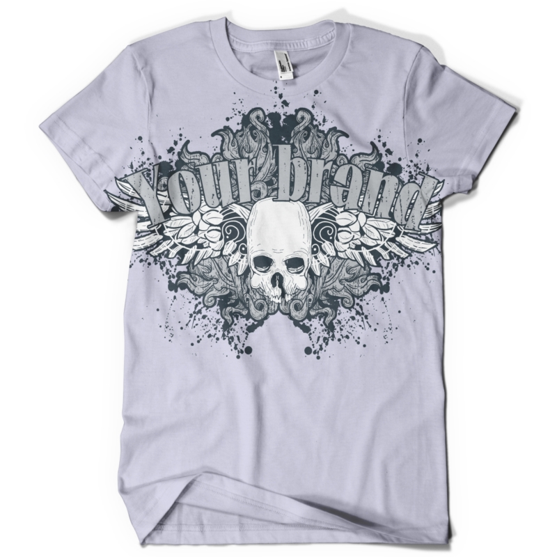 Detailed skull with wings and flowers perfect for rock bands, where also you can easily add your brand. Your rock band t-shirt template is available in vector format and can be used for digital printing and screenprinting. The file will be available for Adobe Illustrator, Adobe Photoshop and Corel Draw.