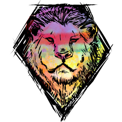 This design features a unique illustration of a lion, rendered in ink and watercolors, combined with various techniques which make it have great impact on a t-shirt.