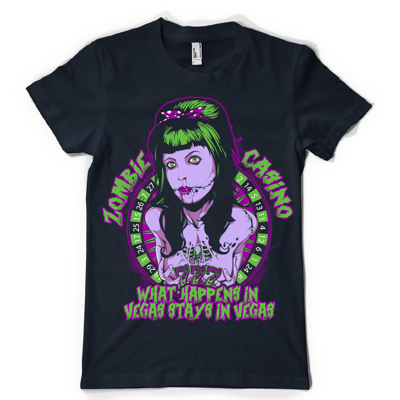 Zombie Casino design features a lucky blood detailed screen print now available for Adobe Illustrator, and Corel Draw and can be used for digital printing and screenprinting