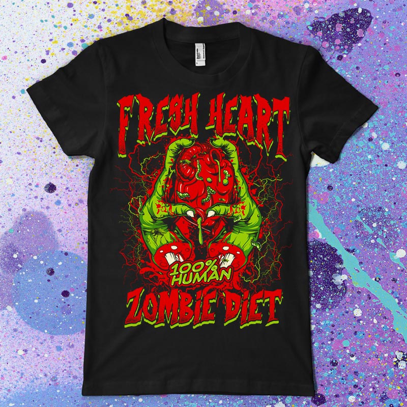 Zombie Diet Racing design features a gore food detailed screen print now available for Adobe Illustrator and Corel Draw and can be used for digital printing and screenprinting.