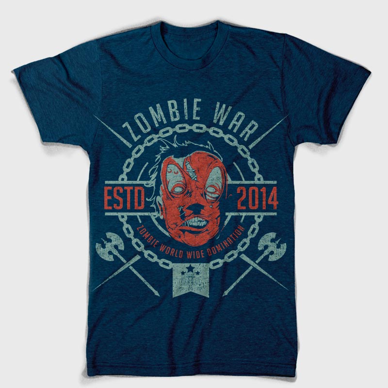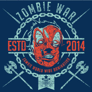 Graphic design featuring detailed zombie mask . Zombie War template is available in vector format and can be used for digital printing and screenprinting. The file will be available for Adobe Illustrator, Adobe Photoshop and Corel Draw